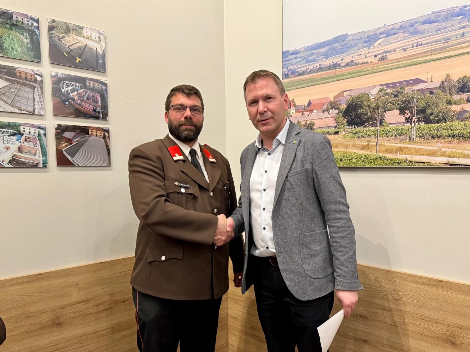 Sein Vorgänger Florian Grünböck legte das Amt aus persönlichen Gründen zurück. Der Bürgermeister und Kommandant Christopher Zeiner bedankten sich herzlich für Florians wertvollen, engagierten und zuverlässigen Einsatz in dieser Funktion. Gleichzeitig gratulierten sie Martin zur erfolgreichen Wahl und Martin wurde offiziell vom Kommandanten angelobt.