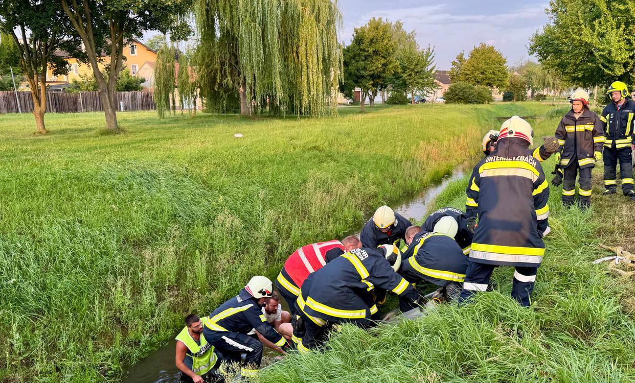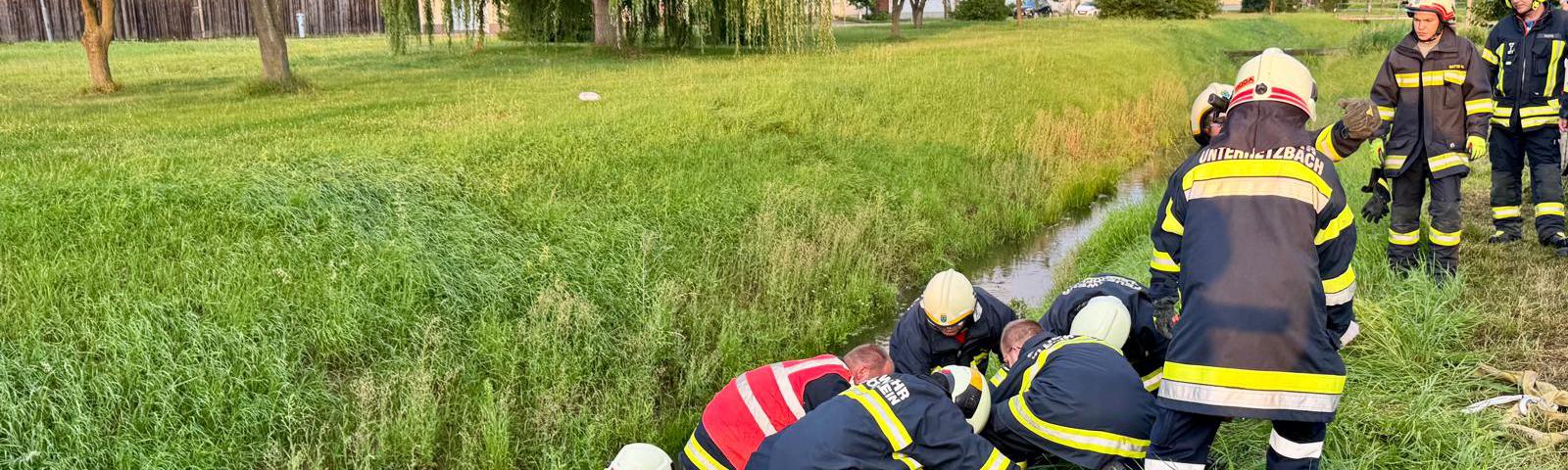 In den frühen Morgenstunden des 17. August 2025 wurde die Feuerwehr Kleinhöflein um 06:34 Uhr zu einer T2-Menschenrettung alarmiert. Eine Person war über eine Böschung gestürzt, in den Bach gefallen und konnte diesen nicht mehr aus eigener Kraft verlassen.